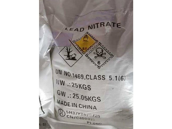 Character: White crystalline, relative density 4.53(20℃), easily soluble in water, liquid ammonia, light dissolve in ethyl alcohol, not dissolve in concentrated nitrate acid, solubility 56.5g/100g water (20℃). Dry lead nitrate decompose at 205-223℃. Damp lead nitrate decompose at 100℃, first become Pb(NO3)2 . PbO, go on heating, then become PbO. It is strong oxidant, putting together with organics will lead it burning, noxious.